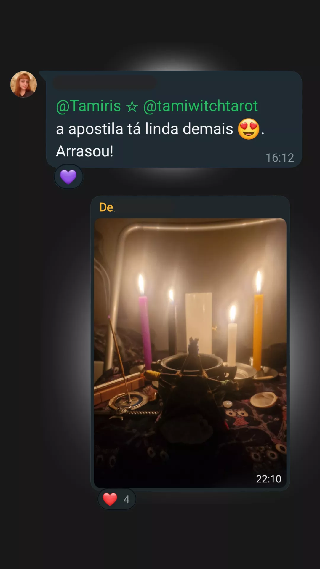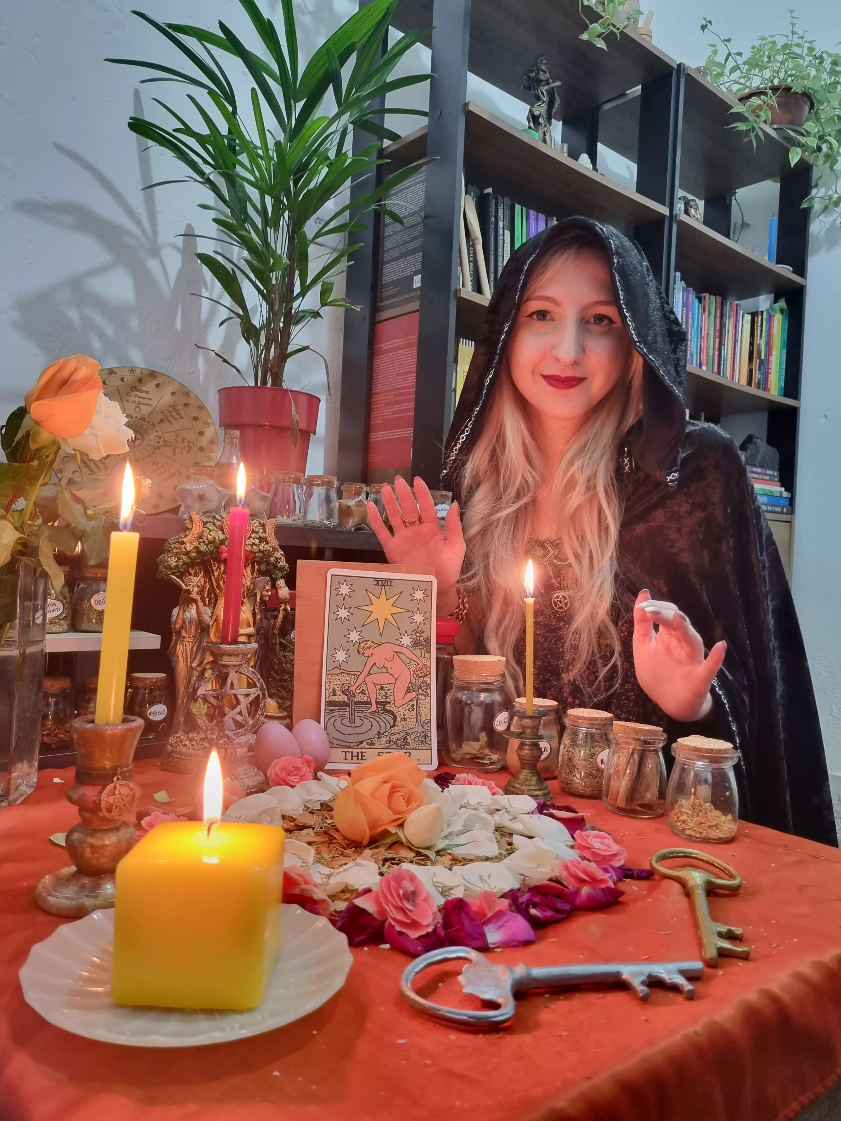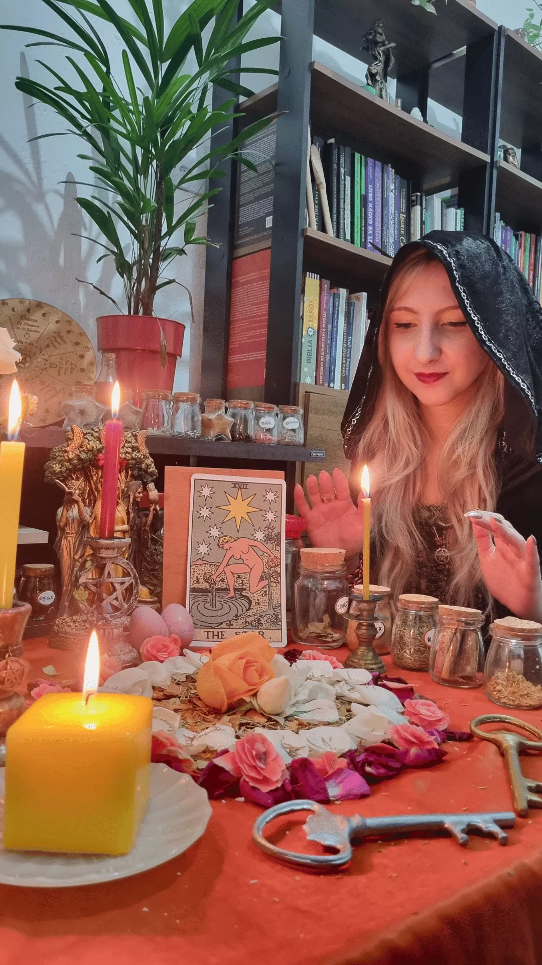 Sou Tamiris Ribeiro — psicóloga, taróloga, professora de Bruxaria Natural e iniciada nos caminhos da magia desde 2018.