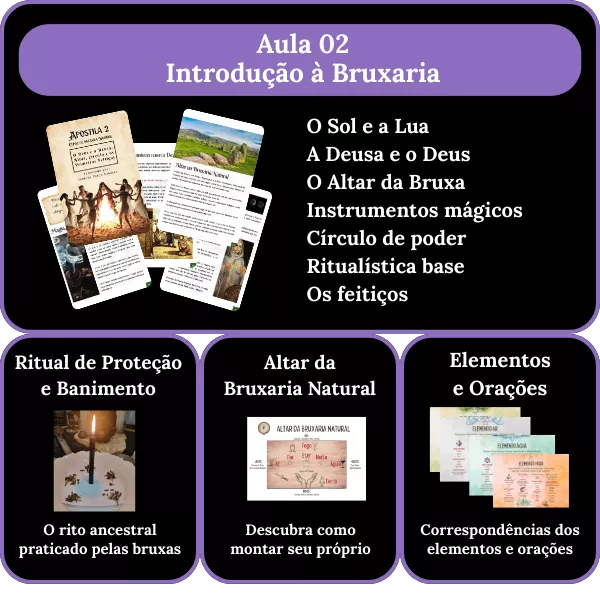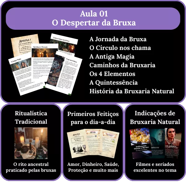 No final da jornada, você será consagrada como Sacerdotisa da Bruxaria Natural. Uma guardiã da sabedoria, capaz de criar e conduzir seus próprios rituais com autonomia.