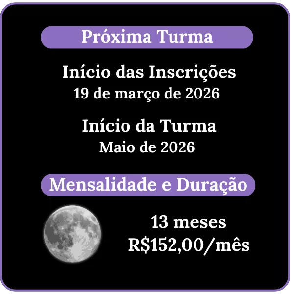 Ao longo de treze lunações você irá se reconectar aos ensinamentos da bruxaria tradicional e ao final, com segurança, passará pela consagração se tornando também uma guardiã dos conhecimentos da Bruxaria Natural.